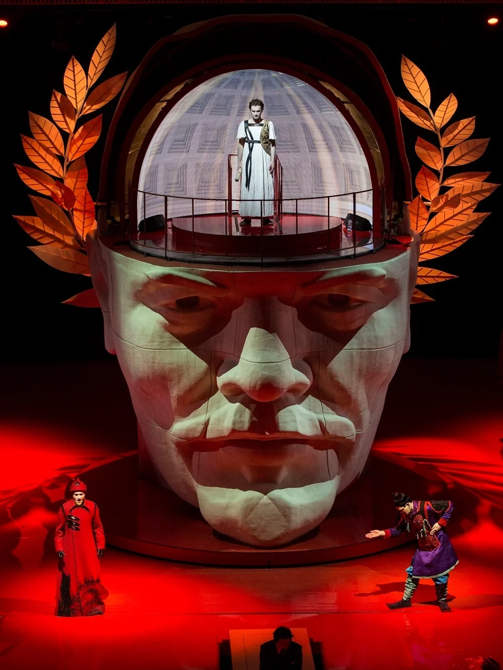 Dmitri Kourliandski's opera Octavia. Trepanation, staged by Boris Yukhananov, premiered in 2017 in Amsterdam at the Holland Festival. The libretto is based on Lev Trotsky's essay about Vladimir Lenin (1924), and on fragments of a play attributed to Seneca about the Roman emperor Nero. The stage is dominated by an enormous head of Lenin, and centaur skeletons. It is a complex, multivalent work, in which the theme of tyranny is projected onto the contemporary world. The Russian premiere, for which the Electrotheatre has announced an audition for volunteers to participate as soldiers in a Terracotta army, will take place on the stage of the Stanislavsky Electrotheatre on October 17 to 19 as part of the Territory festival.